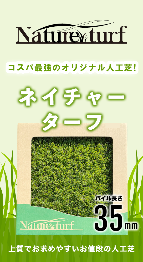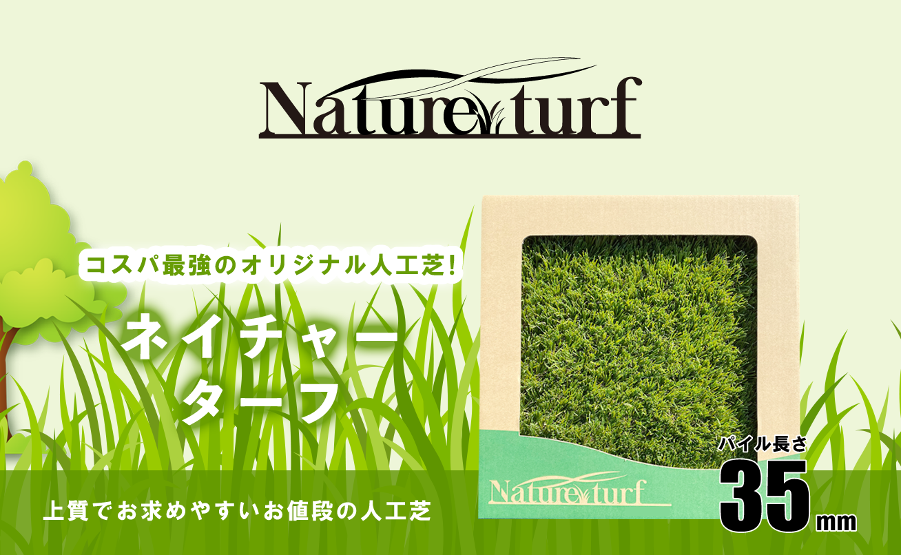 ネイチャーターフ®はエクステリアのプロショップが色、質感、コストパフォーマンス を追求した人工芝です。